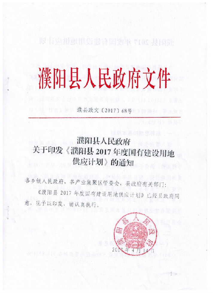 • 濮阳县2016年度国有建设用地供应计划